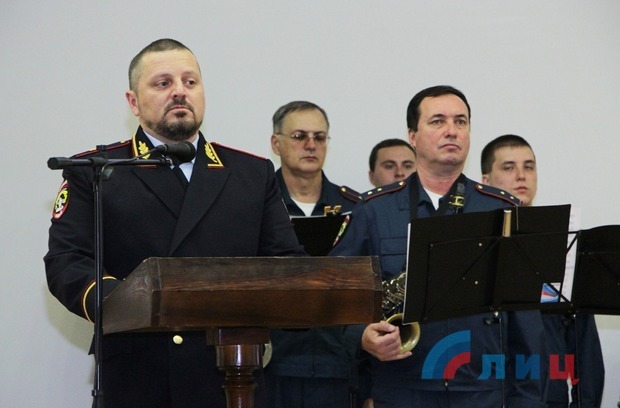"История вашей службы уходит далеко в XVIII век, когда (император Российской империи) Петр Великий издал указ о полиции. Это та служба, на плечи которой легла задача по охране общественного порядка и борьба с преступностью. На ваших плечах в нынешней обстановке лежит та же задача", - обратился к сотрудникам заместитель руководителя администрации главы ЛНР Олег Черноусов.