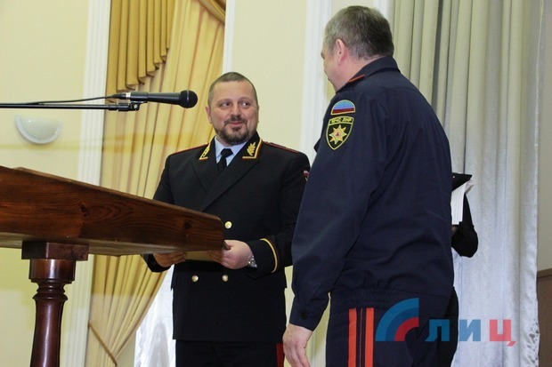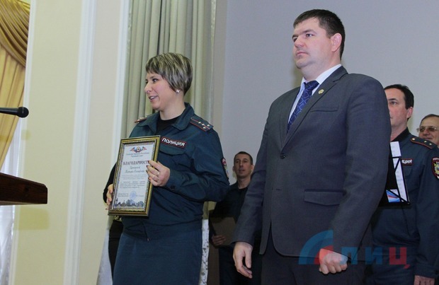Лучшие сотрудники полиции получили медали и благодарственные грамоты главы ЛНР Игоря Плотницкого, а также Народного Совета, Совета министров и его министерств, администрации Луганска.