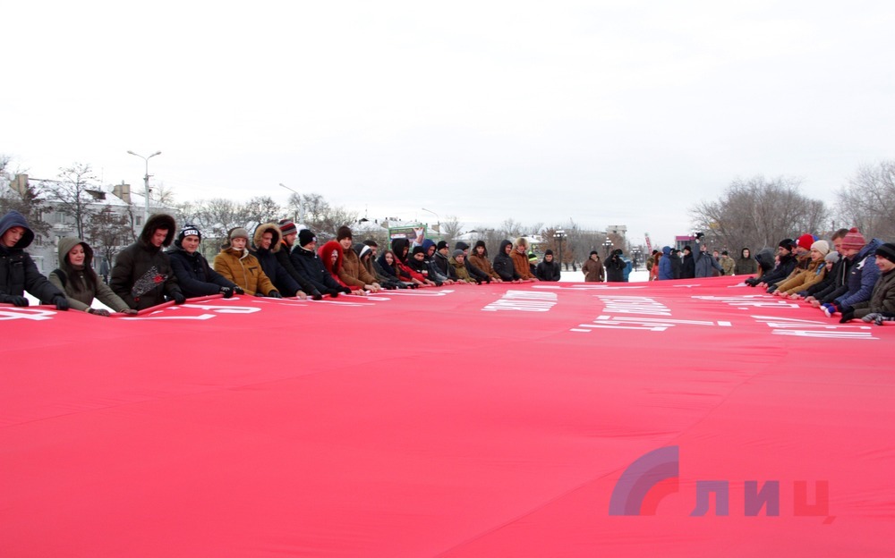 Активисты из ЛНР и России развернули в Луганске копию Знамени Победы площадью 200 кв м