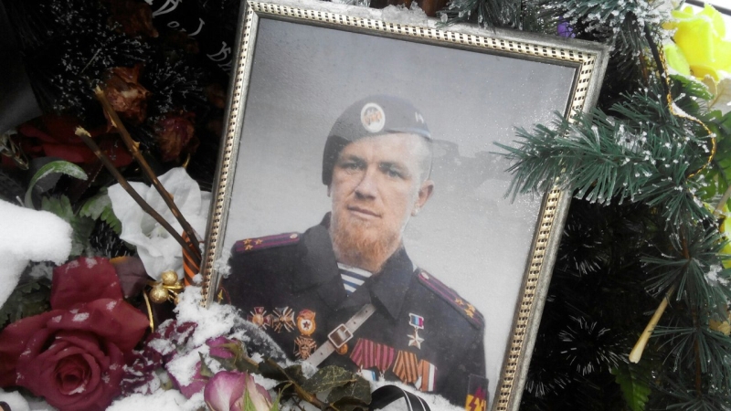 Рядом с Моторолой похоронен боец Новороссии Виталий Андреев, также погибший в октябре 2016 г. Его могила тоже ухожена, с венками и цветами.