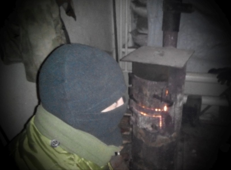 Мы с Дедом Морозом и подарками были восприняты с детским восторгом. Первым делом погрелись возле буржуйки – зима все-таки. Это – единственный источник тепла в этом полу разбитом здании: оно, фактически, и без окон, и без дверей. Горячее питание ребята тоже готовят при помощи этой буржуйки, или же на костре, который разводят в более-менее безопасном месте, когда обстрелы затихают.