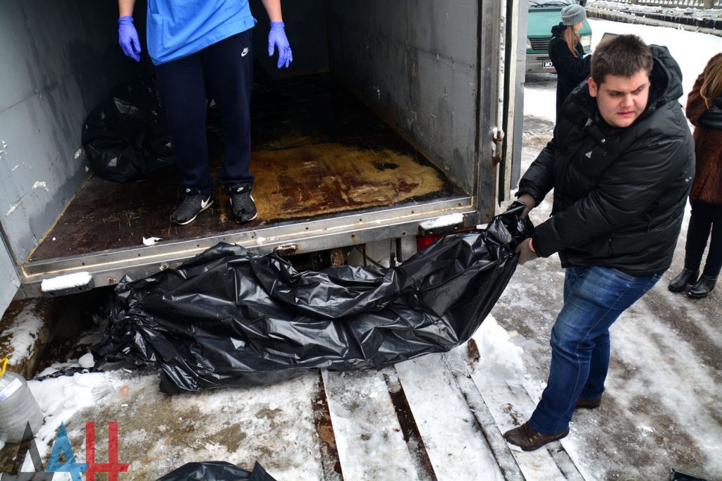Процедура под руководством республиканского командования прошла в Донецком городском судебно-медицинском морге больницы им. Калинина.