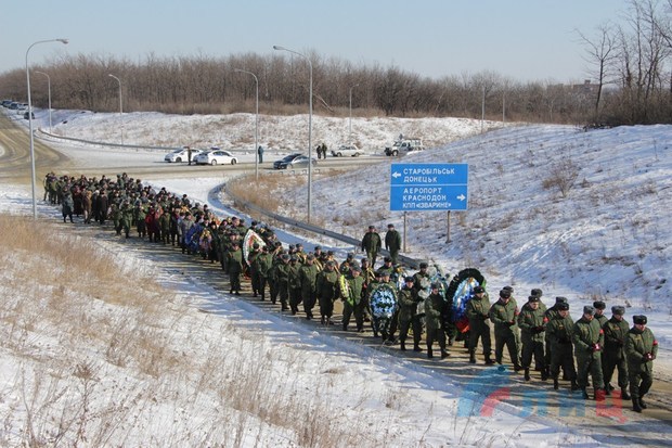 Церемония прощания с полковником, в которой, по данным пресс-службы Народной милиции, приняли участие более 2 тыс. человек, прошла ранее в Луганском академическом украинском музыкально-драматическом театре на Оборонной.