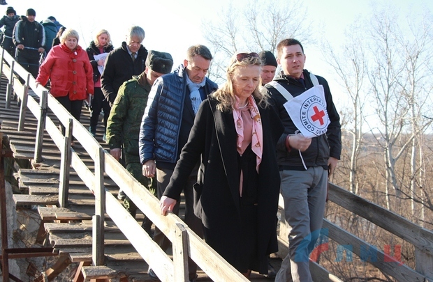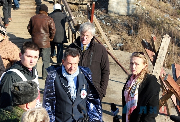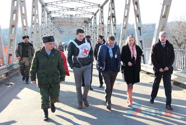 Глава МККК ознакомился с условиями работы блокпоста, осмотрел поврежденный в 2015 году мост через реку Северский Донец, а также проинспектировал работу пункта обогрева, установленного ранее совместными усилиями Красного Креста и Республики.