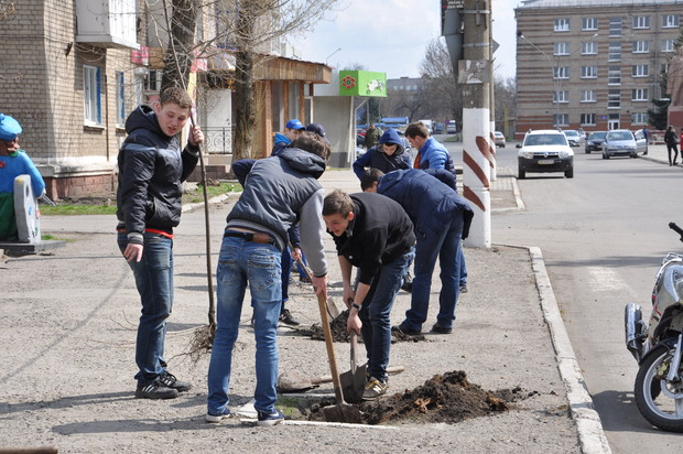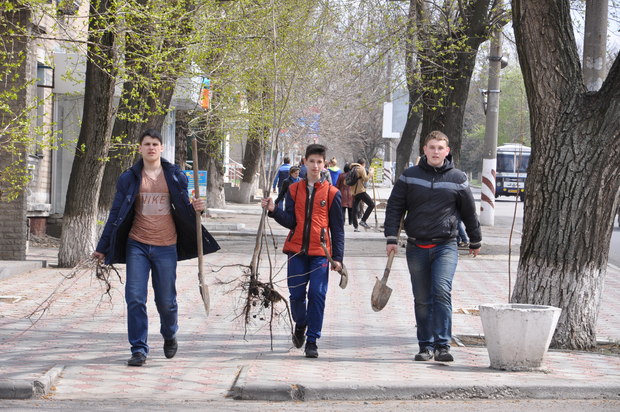 "В продолжение состоявшейся 13 апреля акции "Свеча памяти" 14 апреля глава администрации Свердловска и Свердловского района, представители общественного движения "Мир Луганщине", а так же молодежный актив города почтили память жертв украинской агрессии, возложив цветы к памятнику погибшим ополченцам. Впоследствии была развёрнута масштабная акция по высадке деревьев на улице Энгельса в память о погибших жителях Донбасса - высажены более 50 саженцев клёна", - рассказали в горрайадминистрации.