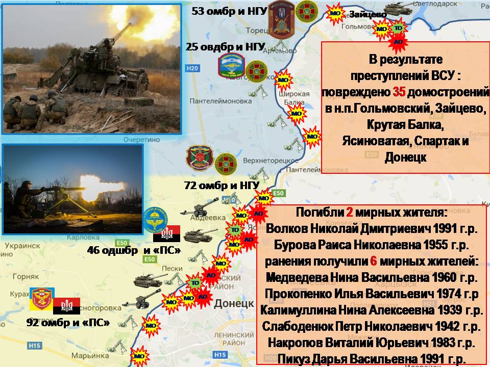 «Всего за прошедшую неделю в результате обстрелов со стороны Украины двое мирных жителей погибли и шестеро получили ранения, — сказал Басурин. — Потери среди военнослужащих ВС ДНР составили: двое погибших и пятеро раненых».