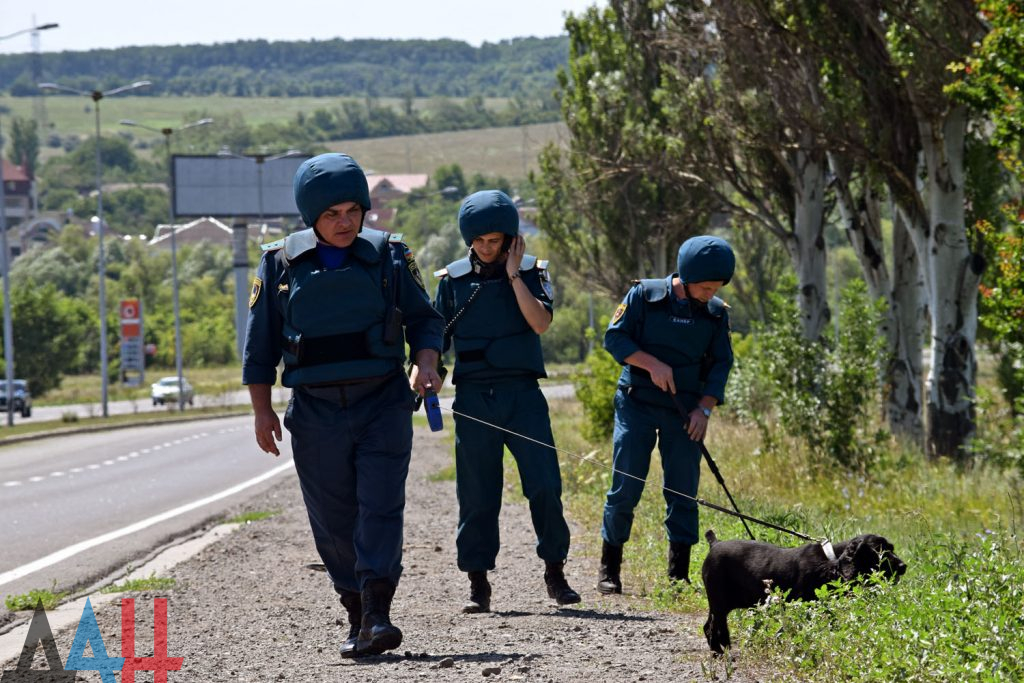 Кинологическое отделение МЧС ДНР проводило обследование: Дома Правительства ДНР, Аппарата Народного Совета ДНР, Центра славянской культуры, складов гуманитарной помощи, здания Драматического театра, Театра оперы и балета, Музея Великой Отечественной войны, площади Ленина, Ботанического сада, заводов «Силур» и Юзовского металлургического и других предприятий Республики.