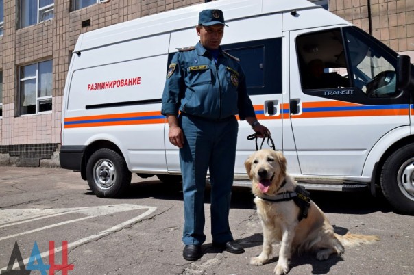 Сегодня, 19 июля, сотрудники МЧС ДНР продемонстрировали работу кинологического отделения. Саперы провели обыск помещений, автомобильных и грунтовых дорог. Кроме этого, четвероногие спасатели нашли противотанковую мину, которая впоследствии была уничтожена. Об этом сообщает корреспондент официального сайта Донецкой Народной Республики.