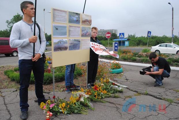 Жители города возложили цветы на месте трагедии, почтили память минутой молчания погибшего во время авиаудара земляка, а также всех краснолучан, погибших в результате вооруженной агрессии украинских карателей.