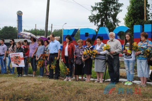 В митинге приняли участие представители администрации, ветераны войны и труда, молодежь общественных организаций "Молодая гвардия" и "Молодежь за мир", активисты движения "Мир Луганщине" и представители "Луганского Экономического Союза".