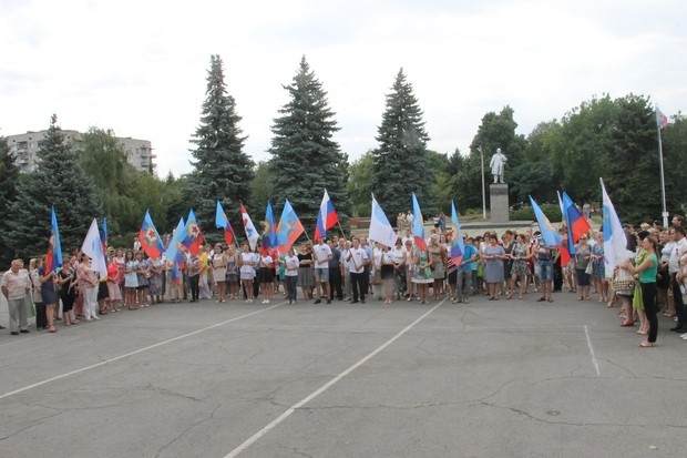 Более 200 жителей Славяносербщины приняли участие в республиканской акции "Флаг державы – символ славы!", инициаторами которой выступили активисты молодежных организаций и ОД "Мир Луганщине".