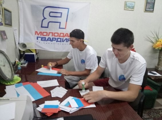 Перед стартом активисты детско-юношеской организации (ДЮО) "Молодая гвардия" вручили каждому участнику автопробега ленточку с цветами российского триколора.