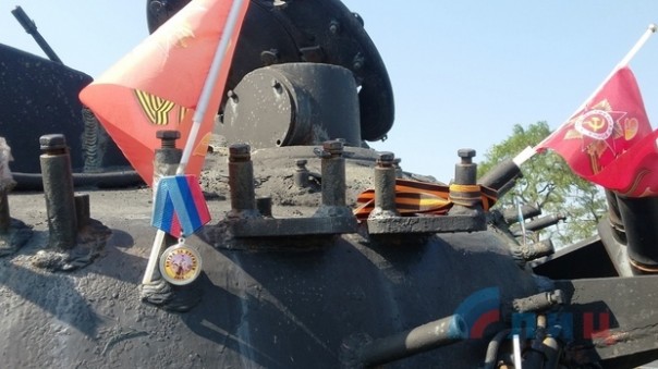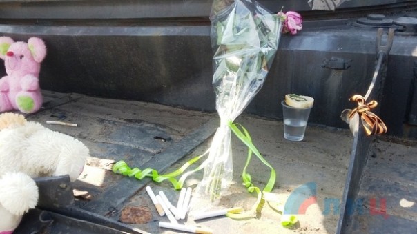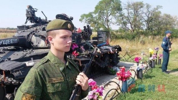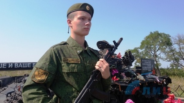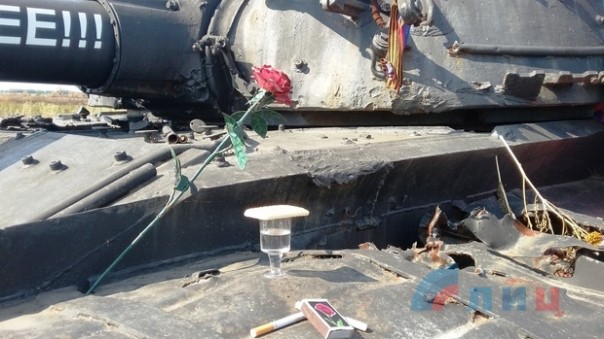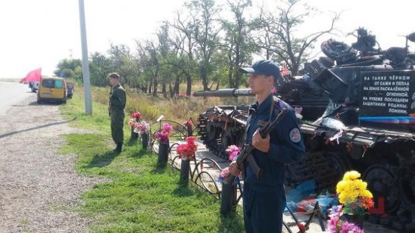 "Молодогвардейский отряд "Юность Новороссии" и отряд "Память Донбасса" решили встать в почетный караул возле подбитого танка, известного танка, к которому жители стали нести цветы, и впоследствии он стал народным памятником", - рассказал он.