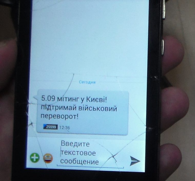 Военнослужащим НМ ДНР, находящимся в районе линии соприкосновения, стали приходить СМС сообщения, с призывом к участникам АТО выйти на митинг 5 и 6 сентября. Об этом сегодня, 4 сентября, во время брифинга рассказал заместитель начальника управления НМ ДНР, полковник Эдуард Басурин.