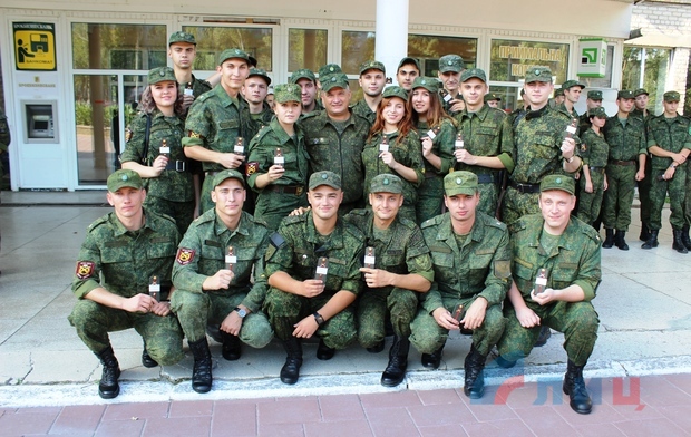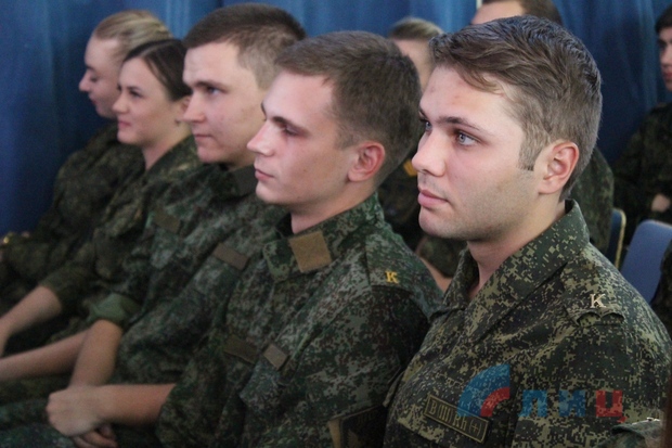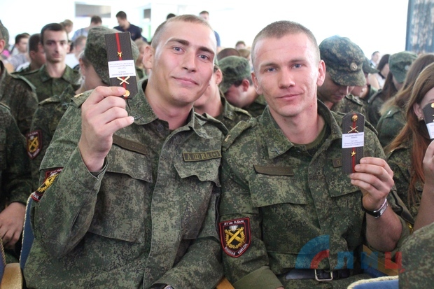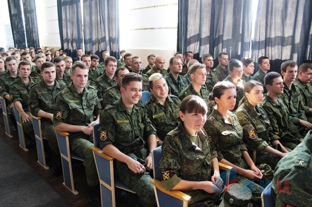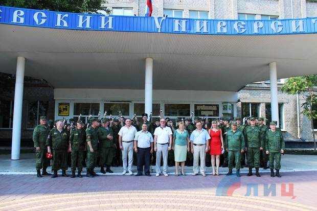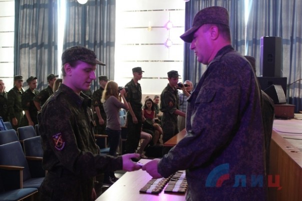 Ранее около 100 курсантов военной кафедры ЛНУ имени Даля, которые успешно сдали итоговые экзамены по программе подготовки офицеров артиллерийских подразделений и приняли присягу на верность Луганской Народной Республике.