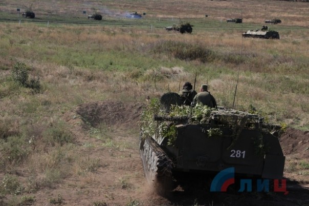 Народная милиция ЛНР провела на одном из полигонов батальонные тактические учения, в которых задействовалось более 100 единиц техники и 600 военнослужащих. Об этом сообщил официальный представитель оборонного ведомства Республики подполковник Андрей Марочко.