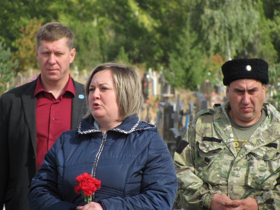 Присутствующие почтили память погибших освободителей Донбасса минутой молчания.