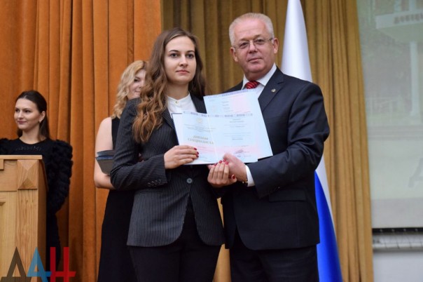 Он уточнил, что среди выпускников, получивших сегодня российские дипломы, также есть жители подконтрольной Киеву части Донецкой области. Добавим, что всего на торжественном вручении собрались порядка 500 студентов, их родителей и педагогов.