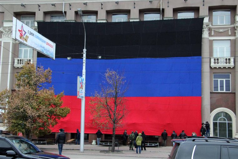 После своего выступления Глава Республики Александр Захарченко дал команду поднять над главной площадью столицы самый большой Флаг Донецкой Народной Республики, который был сшит представителями всех городов ДНР, в том числе Славянска, Мариуполя и другими.