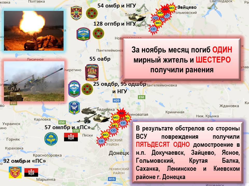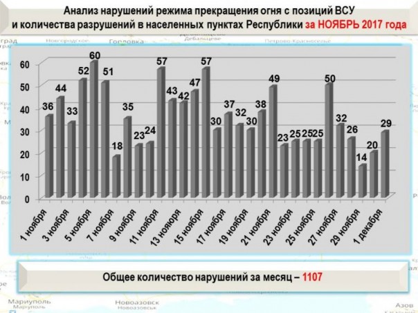 Сводка от МО ДНР 1 декабря 2017. Укрофашисты в ноябре выпустили по ДНР свыше 7 тысяч мин и снарядов, за ноябрь в ДНР погибли пять человек, 10 ранены