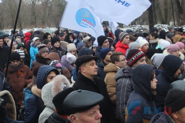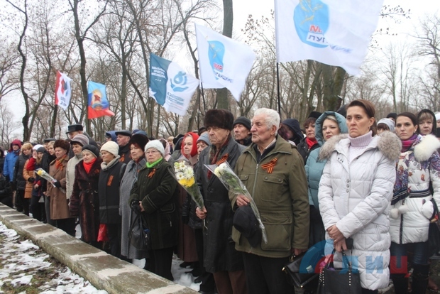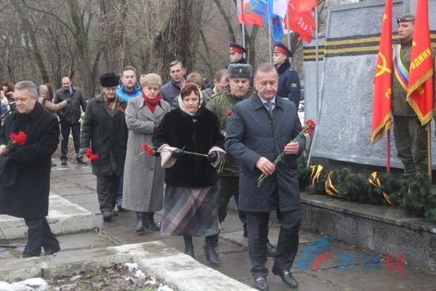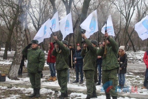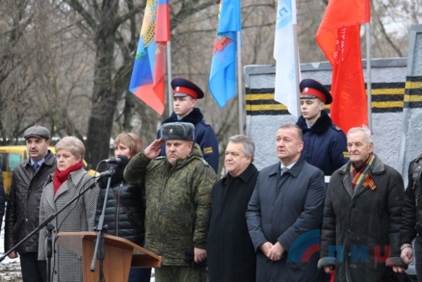 В церемонии приняли участие глава администрации Луганска Манолис Пилавов, военный комиссар ЛНР полковник Игорь Маршуба, представители Министерства культуры, спорта и молодежи, общественного движения (ОД) "Мир Луганщине", учащиеся столичных школ, воспитанники патриотического клуба Луганского военно-исторического объединения (ЛВИО) "Память Донбасса" и общественного объединения "Союз поисковиков Донбасса", активисты молодежных организаций.