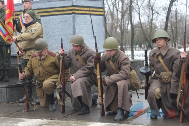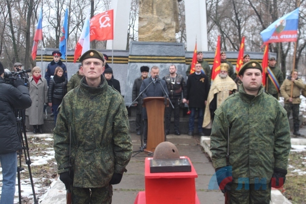 Церемония перезахоронения останков неизвестного солдата Красной Армии, погибшего при обороне Луганска в 1942 году, состоялась у братской могилы в столичном парке имени Горького накануне Дня Неизвестного солдата. Об этом с места события передал корреспондент ЛИЦ.