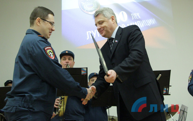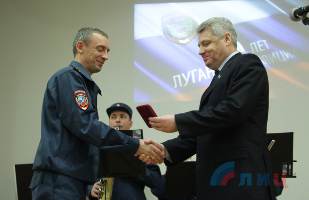 "Поздравляя вас сегодня, я хочу пожелать вам всем и нашему Министерству сконцентрироваться на защите с вашей стороны общественной безопасности, а с нашей стороны - государственной безопасности, но, в итоге, делая общее дело – защищая ЛНР", - добавил он.