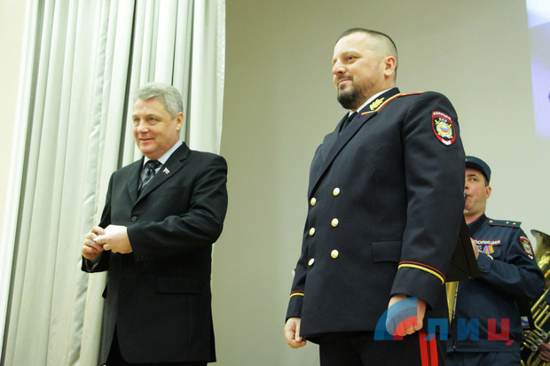 "Ваша служба является основой стабильности и безопасности, гарантом законности и правопорядка", - обратился к сотрудникам полиции председатель Совета министров ЛНР Сергей Козлов.