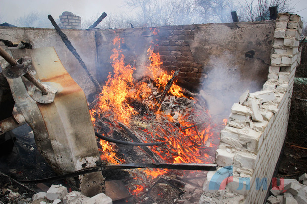 В результате обстрела полностью сгорел один дом, еще три домостроения и хозяйственная постройка получили повреждения. На месте происшествия работают специалисты МЧС и МВД ЛНР.