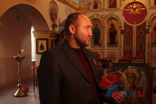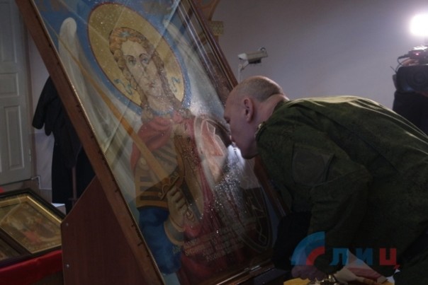 "В ноябре в Москве на IV Казачьем Круге СКВРиЗ было принято решение в дар казакам Луганска передать икону Архангела Михаила, чтобы по молитвам командующего небесным воинством молодая Луганская Народная Республика одержала победу над врагами, которые пришли на ее землю. Думаю, при его поддержке враг будет сражен как на земле, так и на небе. Икона была написана в Москве и освящена сегодня здесь, в храме Луганской Народной Республики", - рассказал он.