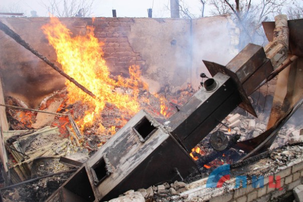 Укрофашисты обстреляли пригород Луганска, сгорел дом, три повреждены, повредили три ЛЭП.