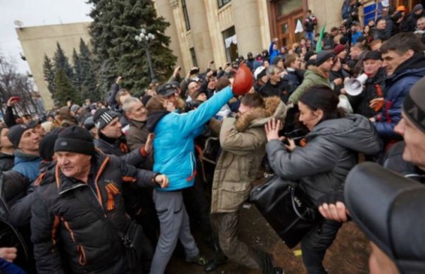 Сергей Слитенко: На самом деле я не слишком много участвовал в массовых мероприятиях, но на площади, разумеется, засветился. Попал даже на фото при штурме ОГА, но, к счастью, украинские СМИ и силовики «определили» меня как белгородского десантника – по их версии администрацию захватывали спецподразделения РФ. В целом же я предпочитал работать самостоятельно или же в тесной компании проверенных людей.