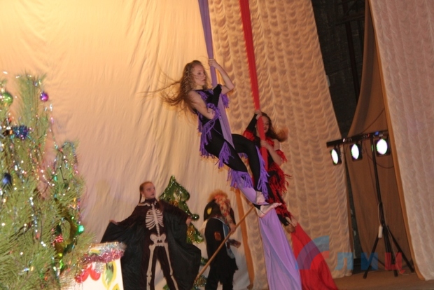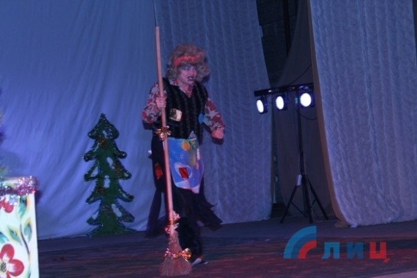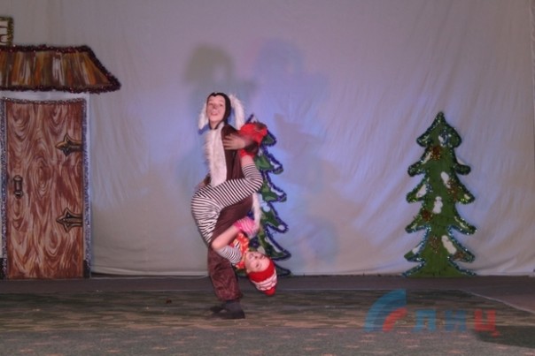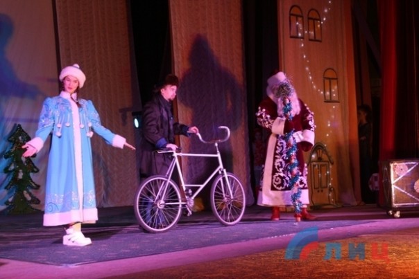Творческие коллективы ДК помогли детишкам встретиться с героями их любимых старых мультфильмов, познакомили с персонажами новых, а также помогли Деду Морозу и Снегурочке, вопреки Бабе Яге и ее друзьям, доставить подарки веселым гномам. А студенты-практиканты творческих факультетов луганских вузов развлекали посетителей ДК подвижными играми и новогодними загадками. В конце представления дети получили сладкие подарки.