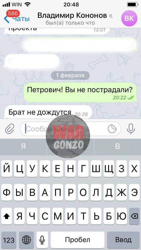 Семён Пегов сообщает: Только что говорил с министром обороны ДНР Владимиром Кононовым по телефону. Голос спокойный. Говорит, все сотрудники целы. О том, что Киев хочет его устранить — Царь (это позывной министра) знал еще несколько месяцев назад. Перед новым годом его охраной была обнаружена снайперская лежка в заброшенном здании, из которой велось наблюдение за кабинетом министра. В тот раз меры предприняли вовремя. Диверсанты рискнули подойти ближе. Пострадали первый и третий этажи министерства. Обошлось без жертв.