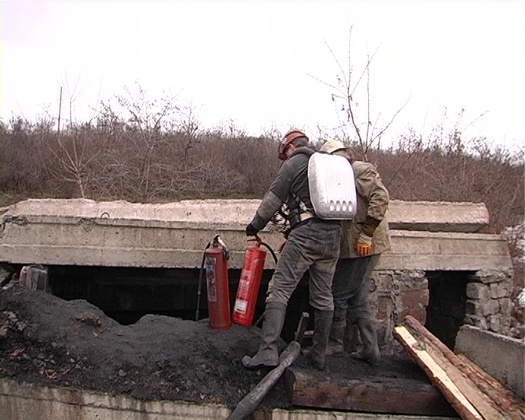 Спасатели МЧС ЛНР ликвидируют пожар на шахте "Комсомольская" в Антраците