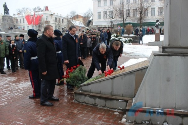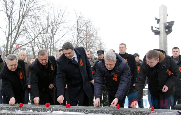 По случаю 75-й годовщины освобождения Луганска почтили память погибших воинов и возложили цветы к Пилону Славы и могиле Неизвестного солдата