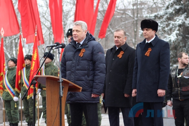 Исполняющий обязанности главы ЛНР Леонид Пасечник принял участие в митинге по случаю 75-й годовщины освобождения Луганска от немецко-фашистских захватчиков.