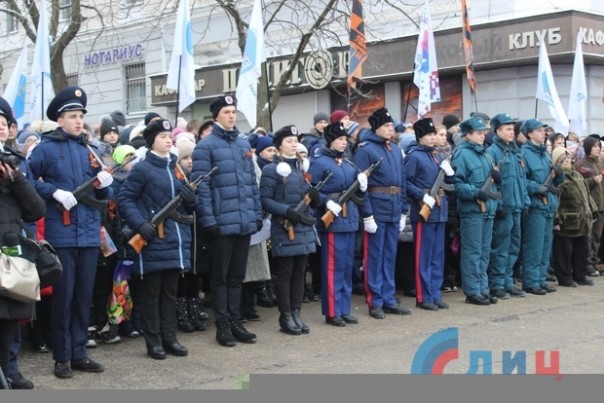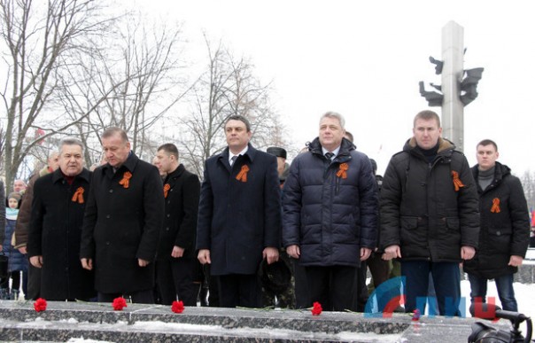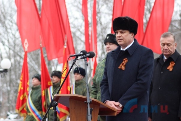 Офицер Народной милиции, руководитель ансамбля "Новороссия" Роман Разум зачитал поздравительный адрес от Луганского землячества в Москве в честь памятной даты. Участники митинга почтили минутой молчания память героев, павших в боях за освобождение Луганска и возложили цветы к Братской могиле офицеров Советской Армии. В рамках митинга также состоялся парад военнослужащих Народной милиции ЛНР.