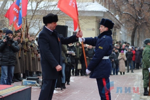 В мероприятии также приняли участие председатель Совета министров ЛНР Сергей Козлов, председатель Народного Совета Республики Денис Мирошниченко, глава столичной администрации Манолис Пилавов, представители Народной милиции, лидеры профсоюзных и общественных организаций ЛНР.