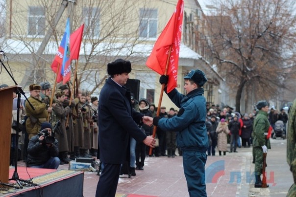 Пасечник вручил копии Знамени Победы школьникам Луганска для вахты на Посту №1