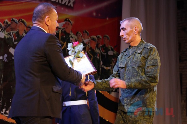В ходе награждения ветеранов поздравительными адресами и.о. главы ЛНР также вручил почетный знак "Битва за Луганск" участнику боевых действий Великой Отечественной войны, освободителю Луганска от немецко-фашистских захватчиков Николаю Зелинскому. Кроме того, грамоты и благодарности от и.о. главы Республики и главы администрации Луганска были вручены активистам ветеранских организаций, военнослужащим Народной милиции, сотрудникам МЧС ЛНР и активной молодежи.