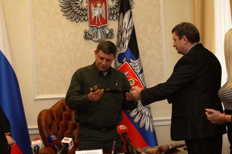 Эдуард Якубовский поздравил Главу Республики Александра Захарченко с Днем защитника Отечества и подарил ему саблю, которой более 100 лет. В свою очередь Глава ДНР презентовал председателю Верховного Суда венгерско-польскую саблю «Баторовка».