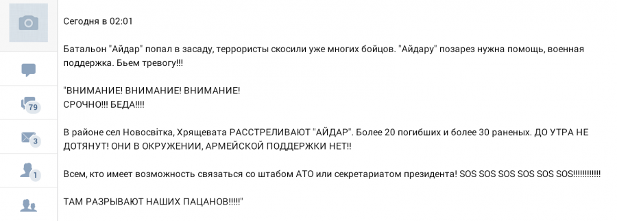 Батальон "Айдар" попал в засаду в районе поселков Новосветка и Хрящеватая, силовики понесли крупные потери, об этом сообщают пользователи социальных сетей, со ссылкой на свои источники в батальоне.