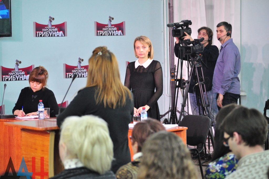 Граждане Украины из Донецка, Луганска и Кировского выступили в качестве потерпевших на первом рабочем заседании Украинского народного трибунала по расследованию военных преступлений режима Порошенко (УНТ), которое началось сегодня в Донецке. Одна из участниц судебного процесса – жительница города Кировское. В результате военной агрессии, развязанной режимом Порошенко, женщина потеряла ребенка.