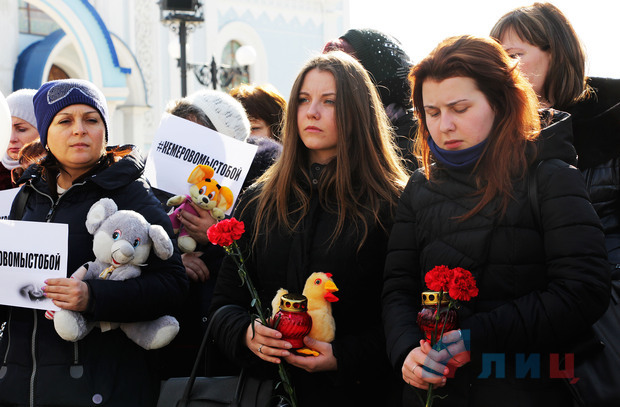 "Опять беда пришла на землю нашу, несчастье случилось в Кемерово, погибли детки, цветы наши. Это горе, скорбит весь русский народ, скорбят добрые люди всей земли. Я хочу от имени Народной милиции Луганской Народной Республики принести соболезнования родным погибших. Царство небесное всем погибшим, а вам терпения, любви и веры, храни вас Господь!" - выразил соболезнования священник после молебна.