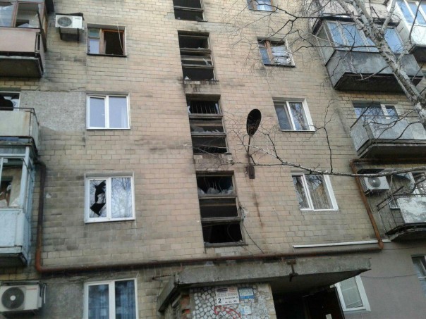 ул.Ленкоранская, д.14 — частично повреждено остекление;