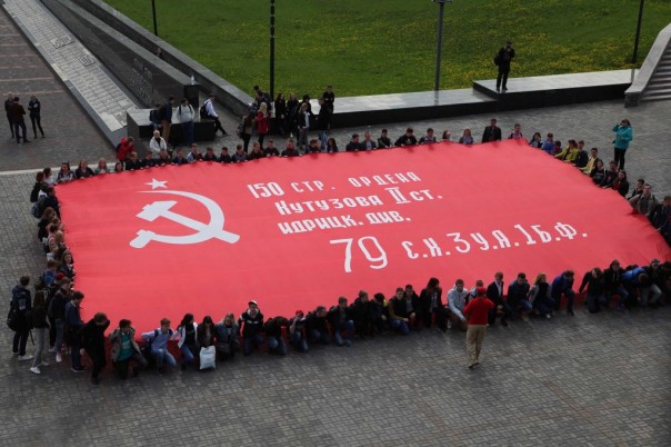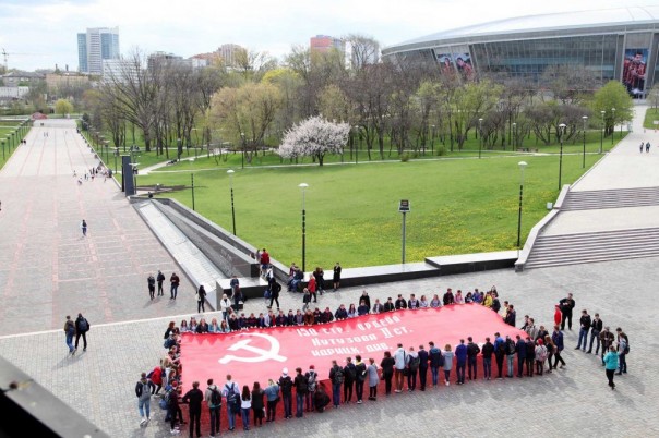 В Донецке развернули огромную копию Знамени Победы (фото)