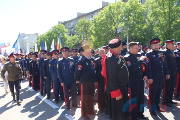 Казаки ЛНР впервые в одном строю прошли на первомайском шествии в Луганске