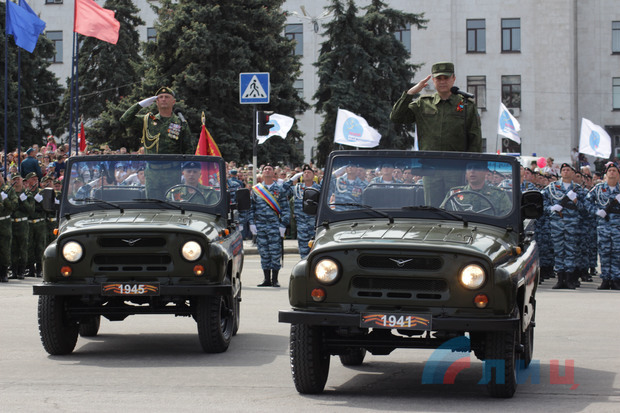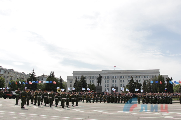Более тысячи военнослужащих и 56 единиц техники участвовали в Параде в честь 73-й годовщины Победы в Великой Отечественной войны в Луганске