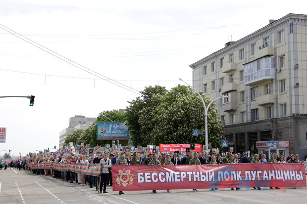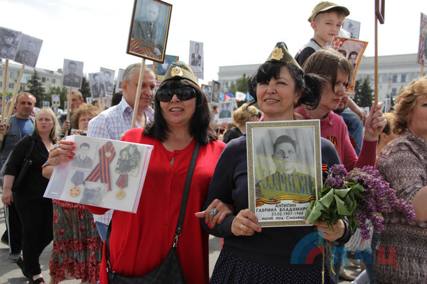 "Сегодня, в наш добрый светлый праздник День Победы, проходит "Бессмертный полк", в котором принимают участие все жители Луганщины, жители Луганска, других городов Республики, которые чтят память своих дедов и прадедов", - сказал министр культуры, спорта и молодежи ЛНР Дмитрий Сидоров.